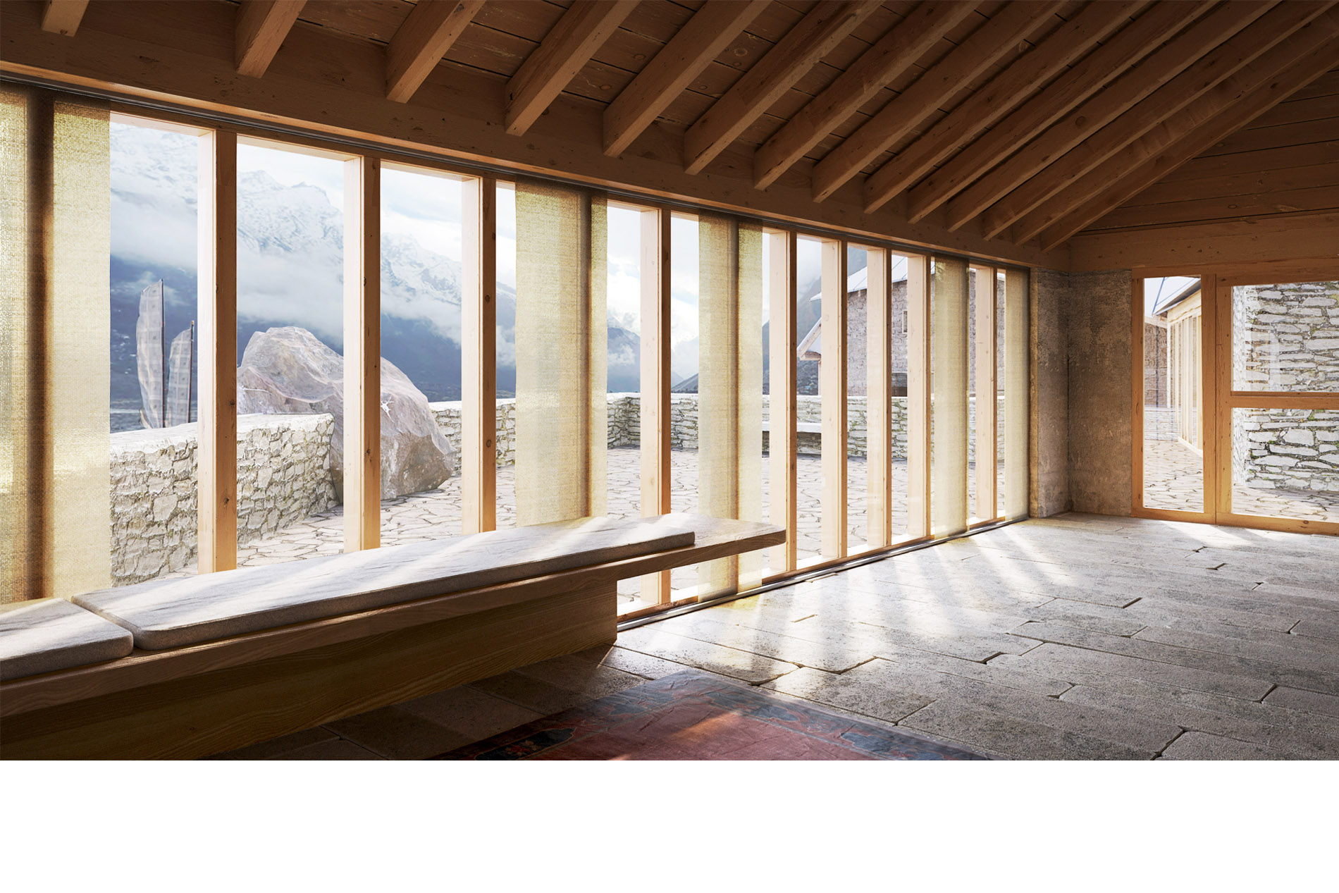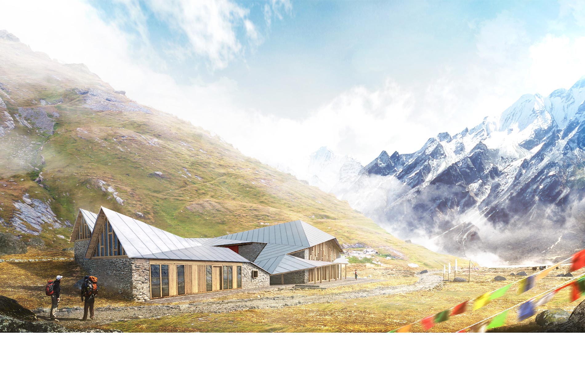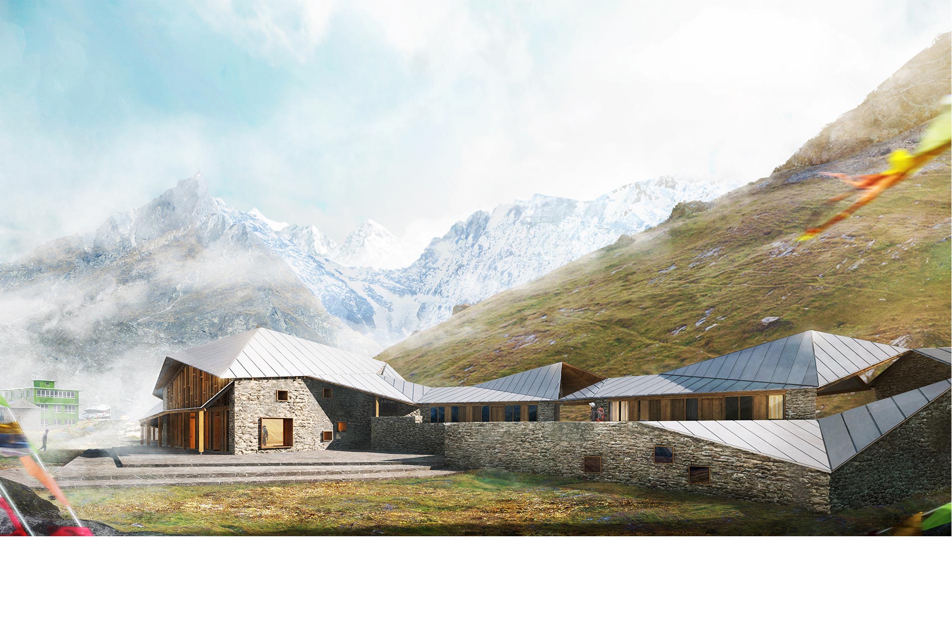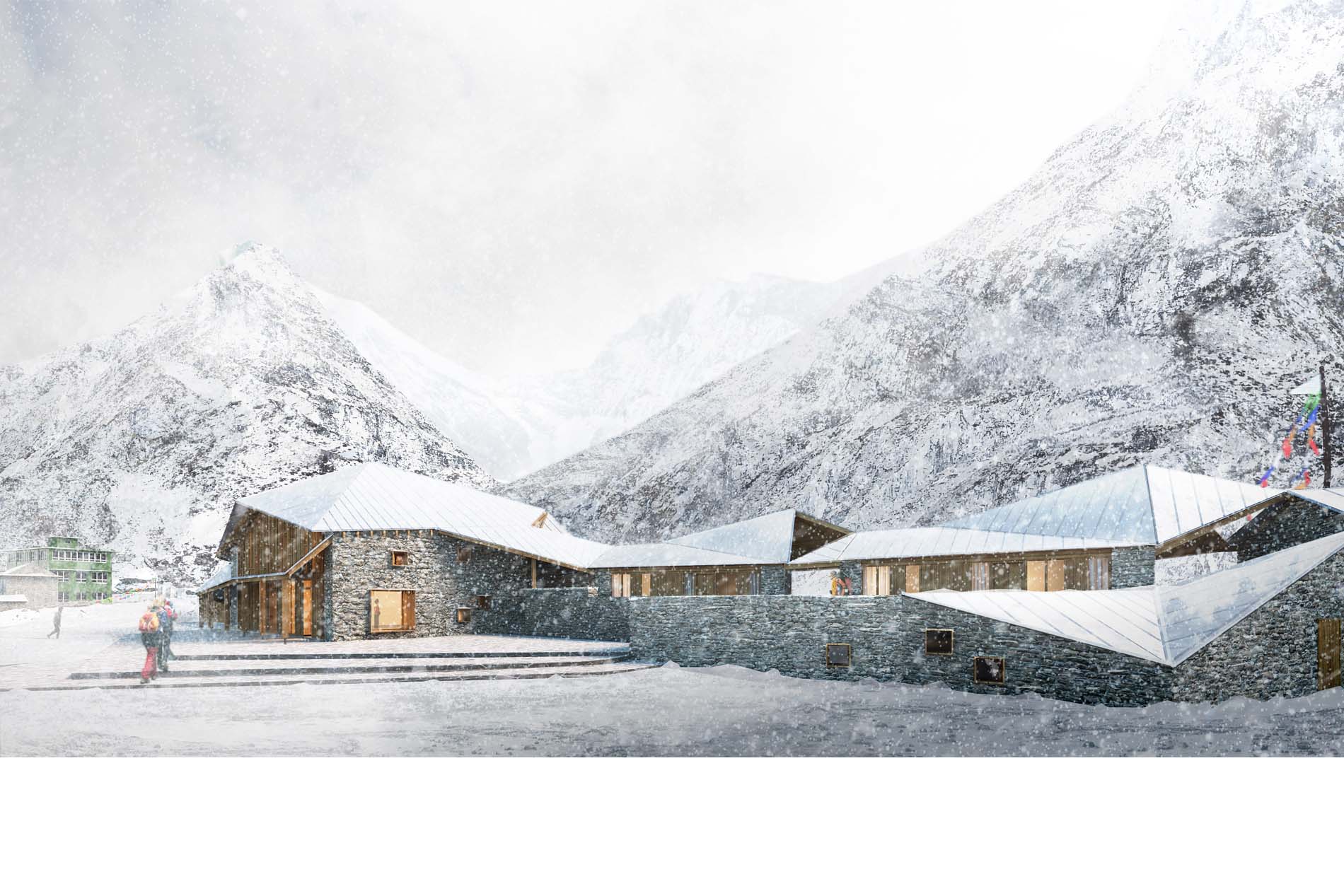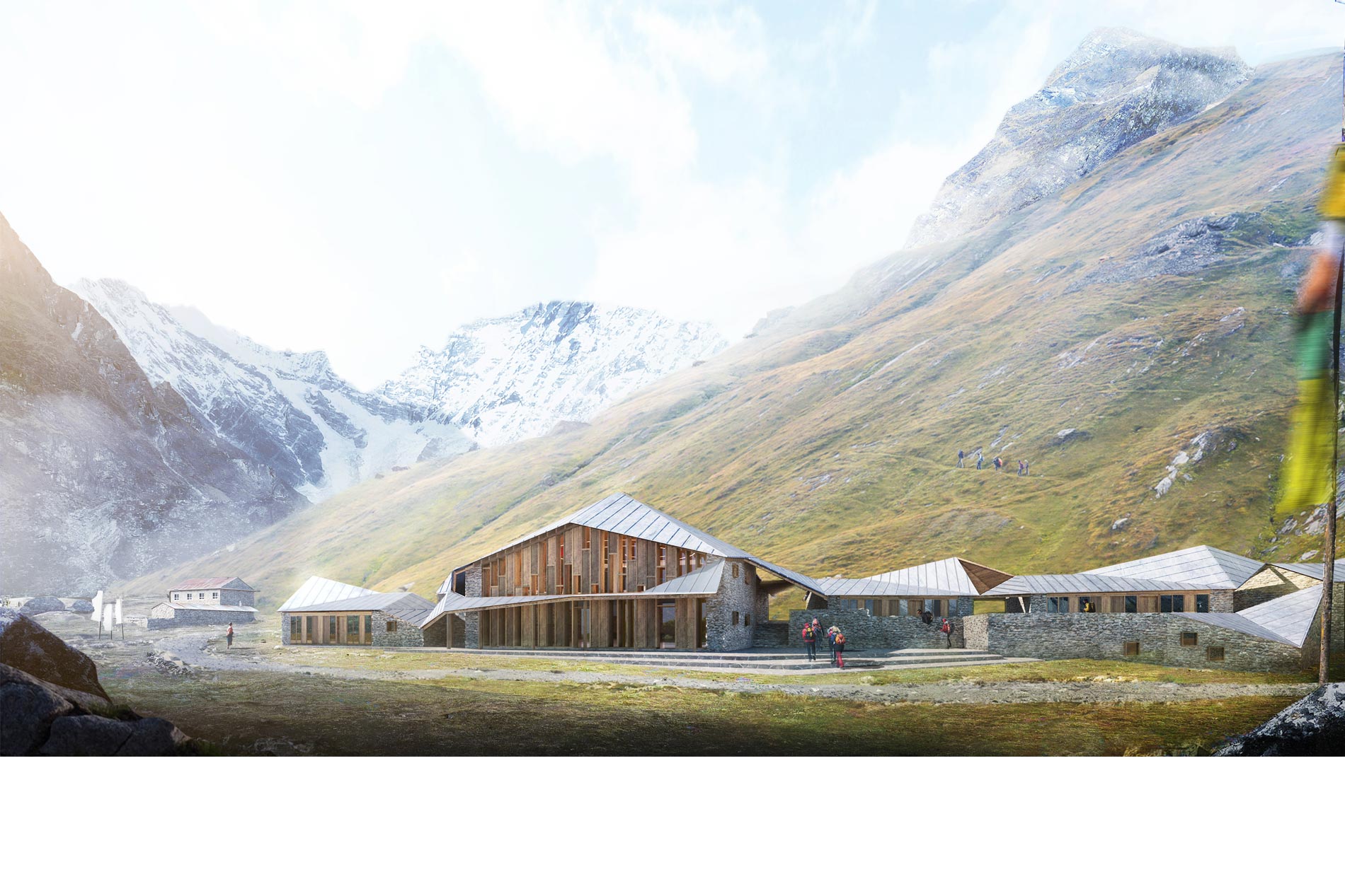 Construction de la première école des métiers de la très haute montagne dans l’Himalaya, côté Népalais. Situés à 4200 m d’altitude, les bâtiments seront construits à l’aide des matériaux locaux : la pierre et le bois. Des dispositifs bioclimatiques sont mis en œuvre (mur trombe, puits canadien), particulièrement adaptés dans ces régions. L’architecture reprend les typologies locales qu’elle réinterprète, notamment pour le bâtiment principal.