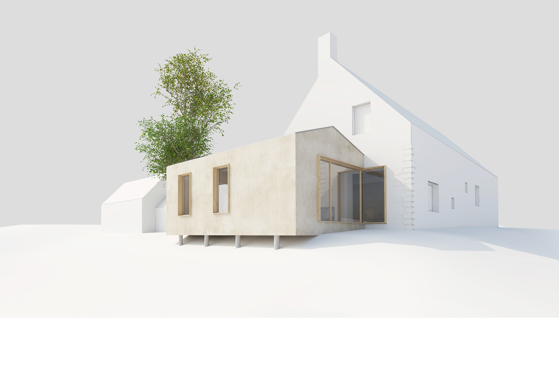 Cette extension d’une maison des champs est l'interprétation contemporaine des « rabouts », volumes anciennement ajoutés au gré des besoins, typiques de l’architecture du Perche.