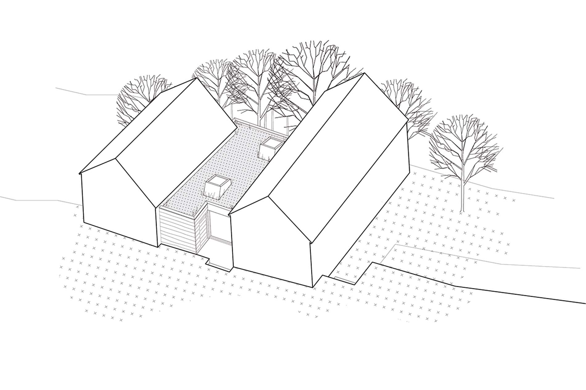 Extension d’une maison par la création d’une liaison entre deux bâtiments existants. Utilisation de matériaux écologiques (isolants laine de bois, chanvre) et de filière locale. Tous les bois utilisés proviennent d’une scierie voisine utilisant la production forestière de l’Orne. Une grande partie de la construction a été effectuée en auto-construction pour laquelle nous avons assuré un accompagnement. Projet publié dans l’ouvrage « Bâtiments modestes réinventés », (O. Darmon, Ed. Ouest France).